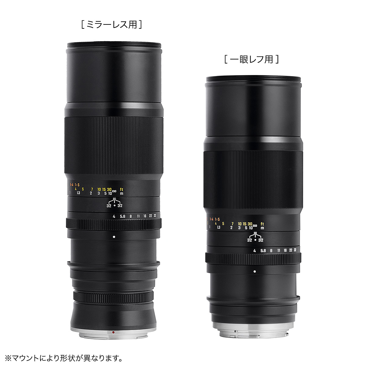 - 付属品:金属製ねじ込み式レンズフード(逆付け可)、三脚座(アルカスイス互換)